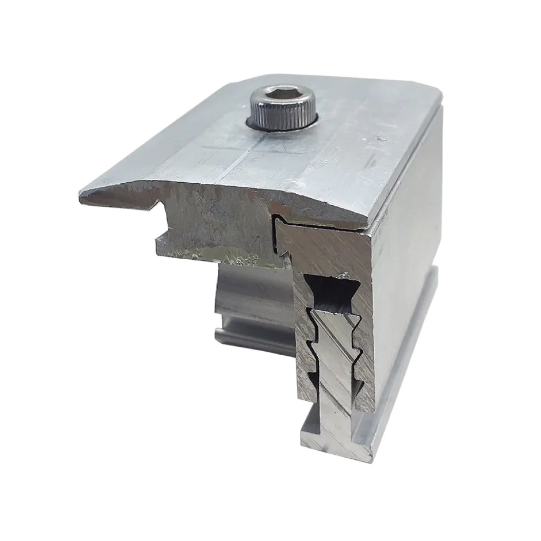 Desenvolvido especificamente para fixação das placas solares, sem necessidade de alteração na estrutura do trilho, permitindo perfeito nivelamento das placas.