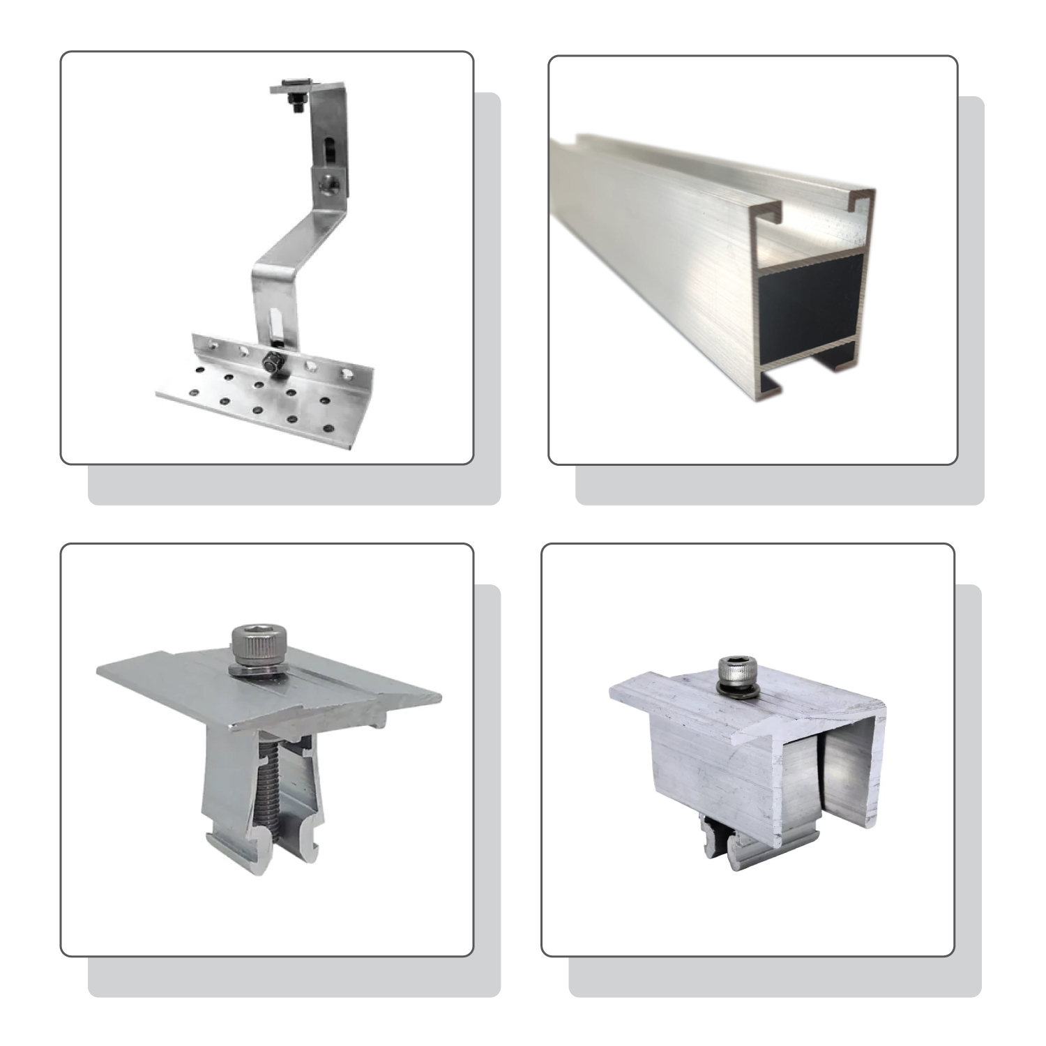 Utiliza-se a liga 6063 do alumínio, o que é uma liga de alta resistência e dureza compatível para fixação de placas solares em telhados (resistente à tempestades, ventos fortes, etc).
