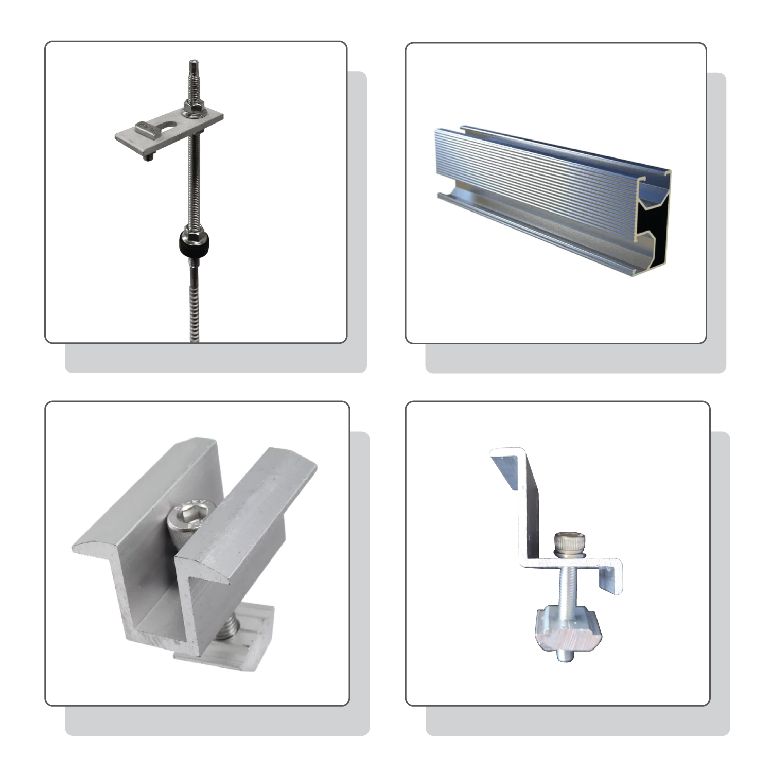 Utiliza-se a liga 6063 do alumínio, o que é uma liga de alta resistência e dureza compatível para fixação de placas solares em telhados (resistente à tempestades, ventos fortes, etc).